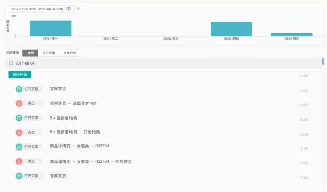 上图中展示了一位用户在某电商网站上的详细行为轨迹,从官网到落地页,再到商品详情页,最后又回到官网首页。网站购买转化率低,以往的业务数据无法告诉你具体的原因;通过分析上面的用户行为轨迹,可以发现一些产品和运营的问题(比如是不是商品不匹配等等),从而为决策提供依据。