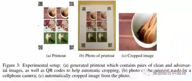 到目前为止,所有以前的工作中对手可以将数据直接提供给机器学习的分类器。对于在物理世界中运行的系统来说,并不总是这样。本文表明,即使在物理世界场景中,机器学习系统也容易受到对抗样本的影响。作者打印清晰图片和对抗图像,并拍摄打印的图像,将这些照片裁剪后送入分类器。该过程通过手动摄影进行,并且不需要仔细控制照明等引入多余变量,具有根据微妙变化破坏对抗扰动的潜力。