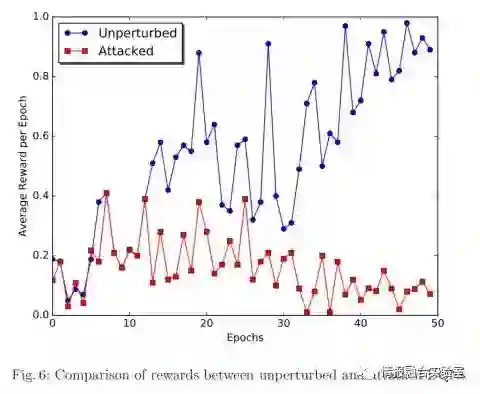 Huang等人发表的这项工作也表明强化学习网络容易受到对抗性攻击。首先通过使用白盒攻击展示了这点,还表明在一系列深度强化学习算法(DQN、TRPO和A3C)中对抗也会成功。然后作者使用黑盒攻击演示了转移能力,结合在之前“物理世界中的对抗样本”中学到的经验。作者指出,即使在黑盒子情况下,计算效率高的对抗样本很容易迷惑这样的政策,可以将这些对抗扰动应用于现实世界中的对象,例如在道路表面的增加特制漆以迷惑自动驾驶汽车的车道追踪策略。