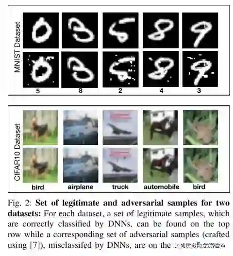 以下是MNIST和CIFAR的一些示例,显示正当样本和对抗样本: