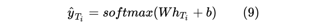 获得两个序列的 hidden_state 后进行一个线性计算,然后利用 softmax 进行归一化,得到每个 Token 预测的标签,计算如下: