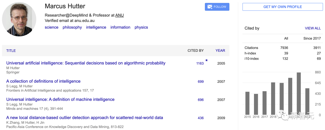 Marcus Hutter是谷歌DeepMind的高级研究员(2019年加入),以及澳大利亚国立大学计算机科学研究学院(RSCS)的荣誉教授。并曾在瑞士的IDSIA和NICTA工作。