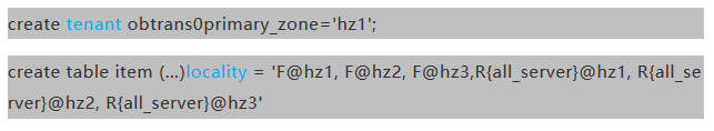 OceanBase的Locality特性还可以指定租户/数据库/表的默认Zone,这样下面的表的leader副本会优先被选举为这个Zone里副本。