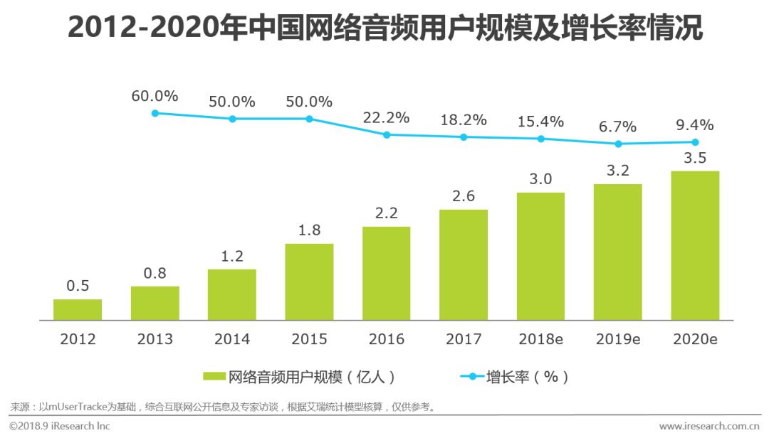 在这样的背景下,中国网络音频用户规模迎来了新一轮的增长,2017年中国网络音频用户规模达2.6亿,2018年有望达3亿,从而为行业的发展注入了源源不断的活力。
