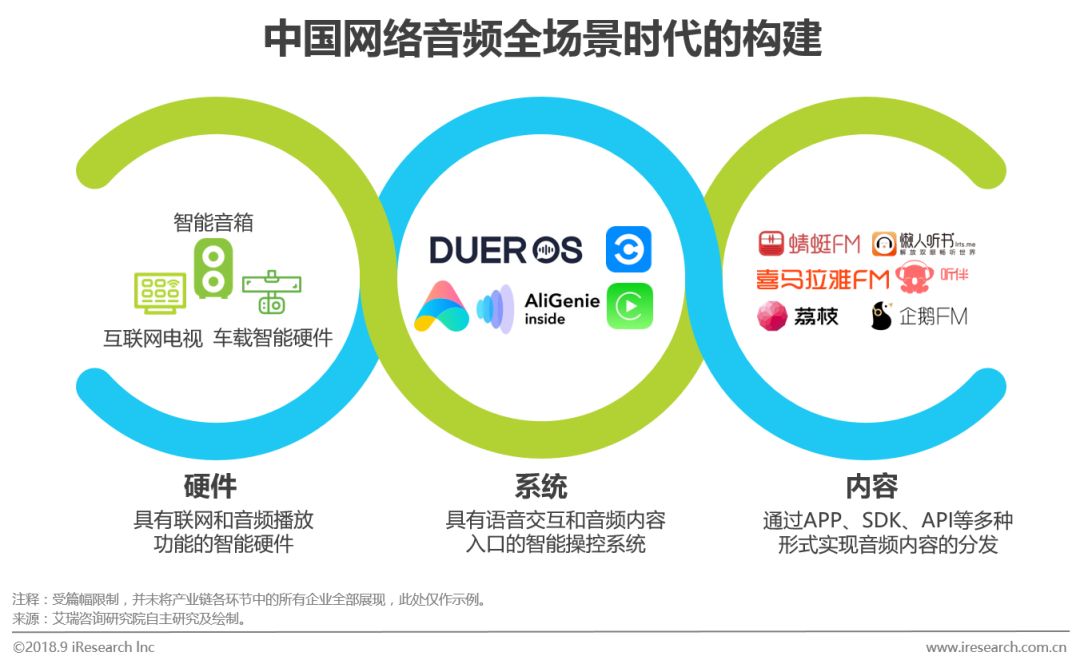 目前中国网络音频行业正由移动时代迈入到全场景发展时代的初期。网络音频的全场景时代,是指硬件制造商、系统研发商与内容服务商一起,通过构建音频场景生态,满足用户在特定场景特征下的音频收听需求。