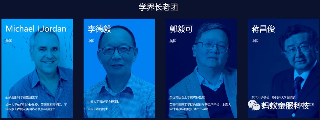 如同江湖盛会一般,大赛首先有科学界的“长老团”:加州大学伯利克分校教授Michael I.Jordan、中国工程院院士李德毅、英国帝国理工学院终身教授郭毅可、以及东华大学校长蒋昌俊,这些科学家是比赛基础理论的指导者和推动者。