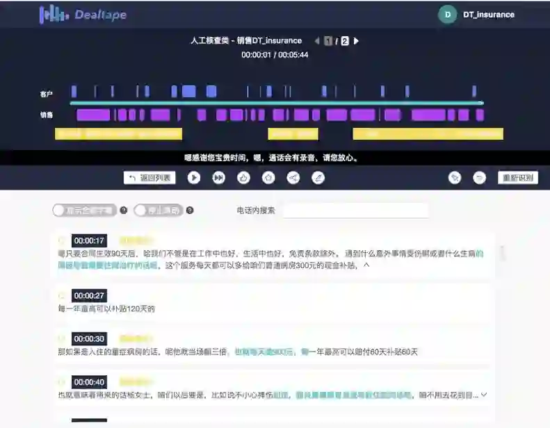 这是因为,同样是呼叫系统,不同行业的使用方式差别会很大,最后音频中的信息分布、信息量以及内容差异也非常大。例如保险销售需要在电话里和客户确认非常多个人信息,一通电话可能长达一小时。而信贷行业去销售的时候,只需要询问对方房产,社保等资质再加微信邀约就可以结束了,一个电话平均只要几分钟。
