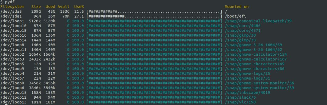 pydf可以用更简洁的方式显示磁盘使用状态。