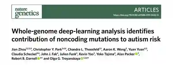 在这项最新的研究中,研究团队训练人工智能学习模型来预测给定序列如何影响基因表达。随后他们选使用机器学习分析了1790名自病症患者及其并未患病的父母及其兄弟姐妹的全基因组。之所以选择这类患者,是因为他们患上的自闭症属于新生突变,与遗传无关。