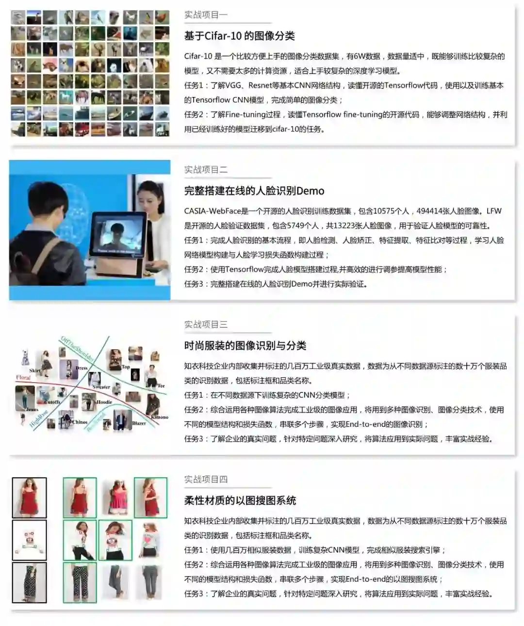 为此,深蓝学院联合知衣科技,重磅推出基于深度学习的计算机视觉实战课程。课程不仅为大家提供了公开数据集的实践项目,也为大家提供数百万真实的工业级实战项目。