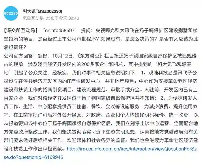 10月13日,央视在一档新闻节目中,曝光该司在安徽扬子鳄国家级自然保护区,建设培训基地。