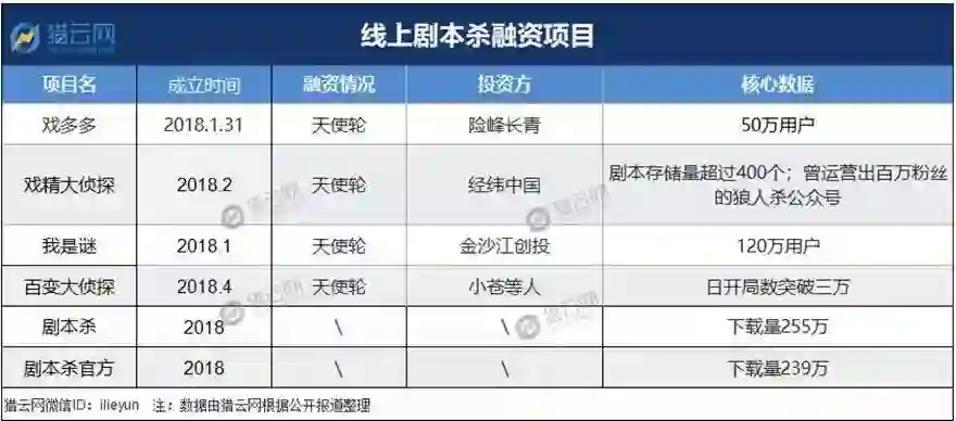 今年4月,戏多多获数百万元天使轮融资,投资方为险峰长青。5月,戏精大侦探获得经纬中国数百万元天使轮融资;7月,我是谜获得金沙江创投数百万元的天使轮投资;10月,百变大侦探获得电竞女神小苍等人数百万元天使轮投资......