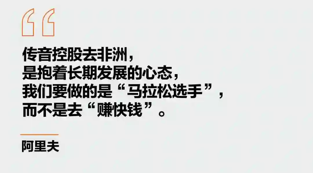 同为创始团队一员的阿里夫同样这样看待非洲市场 :“非洲跳过PC时代,直接进入移动互联网时代,而且非洲有超过10亿人口,手机普及率较低。传音控股进入非洲的时候,手机普及率才10% ~ 20%。我们在研究市场的过程中,发现了其中的机遇。”
