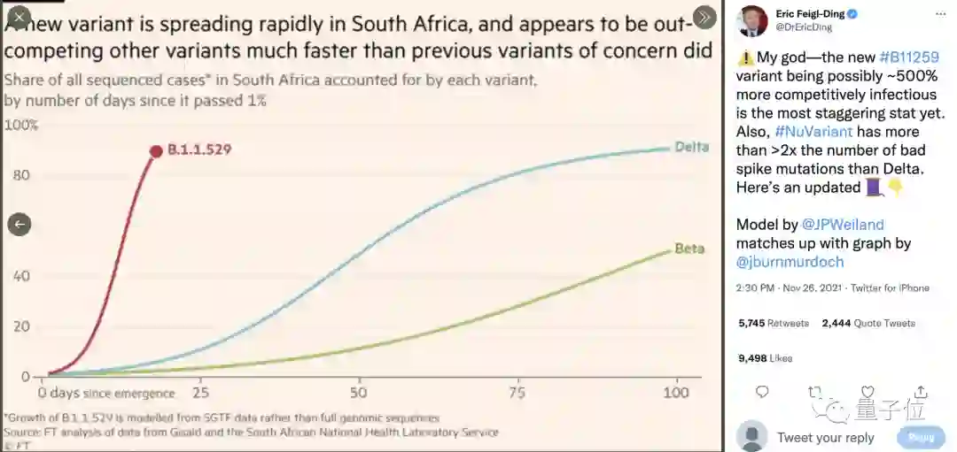 知名流行病学家Eric Feigl-Ding援引流行疾病建模专家JPWeiland的预测,这种变种可能相较于其他变种有超过500%感染率。