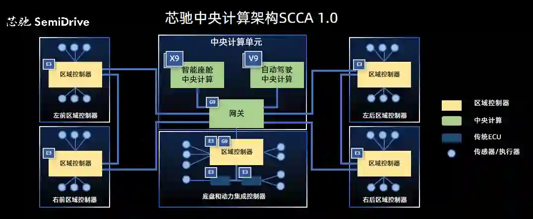 随着电子电气架构从分布式转向域控和中央计算,芯驰也在着手布局即将来临的中央计算平台。基于上述四款芯片组合,芯驰科技表示正规划一套完整的汽车中央计算架构 —— 芯驰中央计算架构 SCCA 1.0。