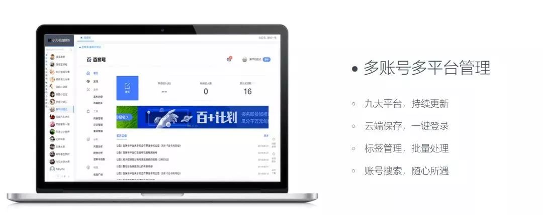 一般这类工具还提供“多平台管理”,可以同时管理企鹅号、头条号、百家号、大鱼号等多个内容平台的账号。