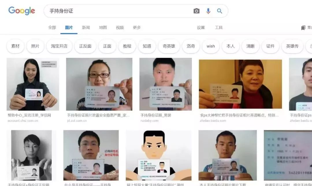 你可能有点纳闷,Google 上怎么能随手搜到那么多手持身份证照片呢?是的,很多人的身份认证信息其实早就泄露了,所以魔高一尺,单纯靠上传手持身份证这种方法其实挡不住做号集团。