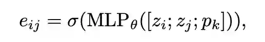 形式上,让 是指示节点 i 和 j 之间的边是否被选择的二进制变量。 的矩阵记为 。为了提高效率和可推广性,作者假设解释图为随机图,采用深度神经网络来学习: