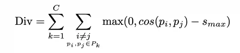 3. 最后,多样性损失 (Div) 来使学习原型的多样性,避免原型之间过于接近: