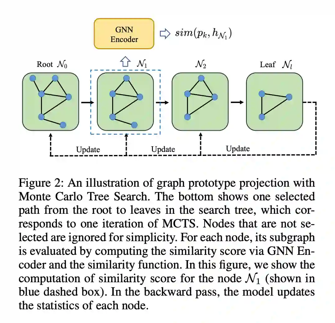 子图采样模块为每个原型输出不同的子图嵌入。随着图大小的时间复杂度呈指数增长,并行化和泛化的难度使 MCTS 算法成为一个不可取的选择。而是提出一种参数化方法进行子图搜索。