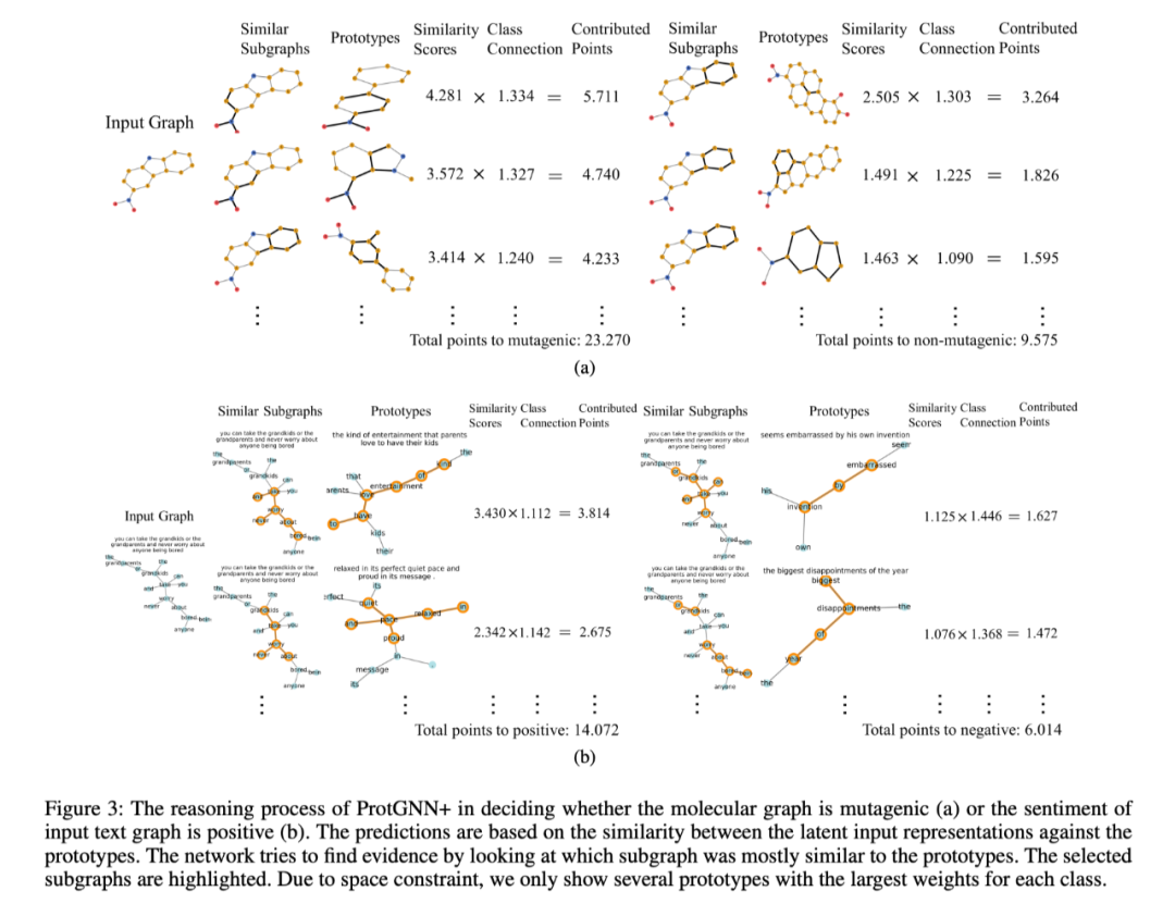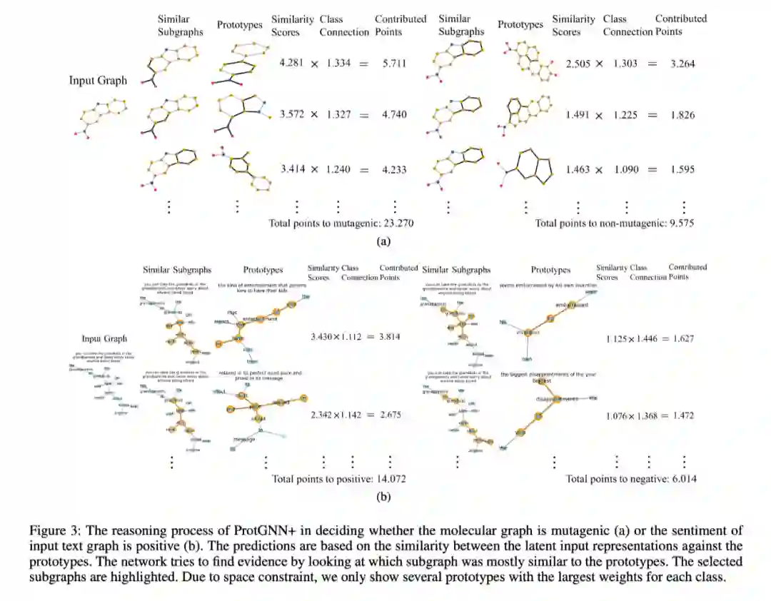 作者进一步提出了一个新的条件子图采样模块的 ProtGNN+,以提供更好的解释在 ProtGNN+ 中,不仅显示了与原型的相似度分数,而且还确定了作为推理过程的一部分,输入图的哪一部分与每个原型最相似。