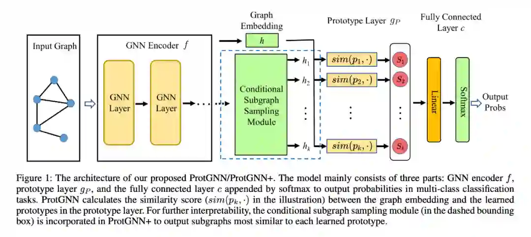 此外,为了更好的可解释性和更高的效率,作者引入了一个新的条件子图采样模块来指示输入图的哪一部分与 ProtGNN+ 中的每个原型最相似。最后,作者在广泛的数据集上评估了模型,并进行了具体的案例研究。广泛的结果表明,ProtGNN 和 ProtGNN+ 可以提供内在的可解释性,同时实现与不可解释性的对等对象相当的性能。