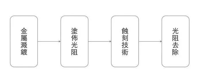 金属溅镀:将欲使用的金属材料均匀洒在晶圆片上,形成一薄膜。