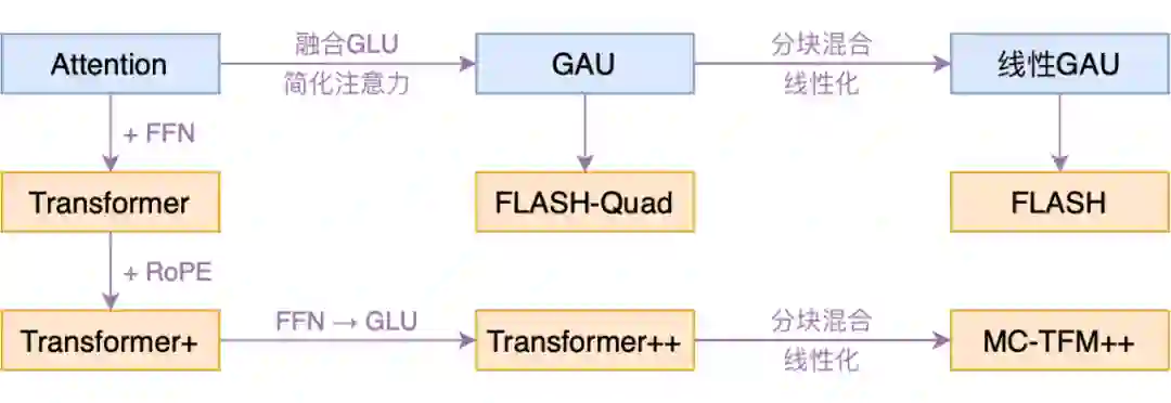 基于线性版本 GAU 搭建的 Transformer 模型,便是作者笔下的 FLASH 模型了。