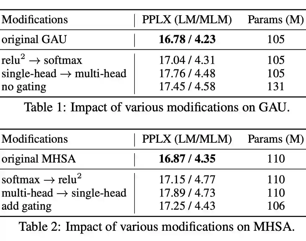 ▲ GAU与多头注意力的一些消融分析