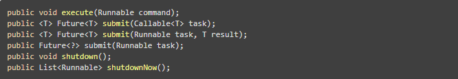 除此之外,ThreadPoolExecutor还提供了shutdown()和shutdownNow()方法用于关闭线程池,区别在于shutdown()方法在调用之后会将任务队列中的任务都执行完毕之后再关闭线程池,而shutdownNow()方法则会直接关闭线程池,并且将任务队列中的任务导出到一个列表中返回。
