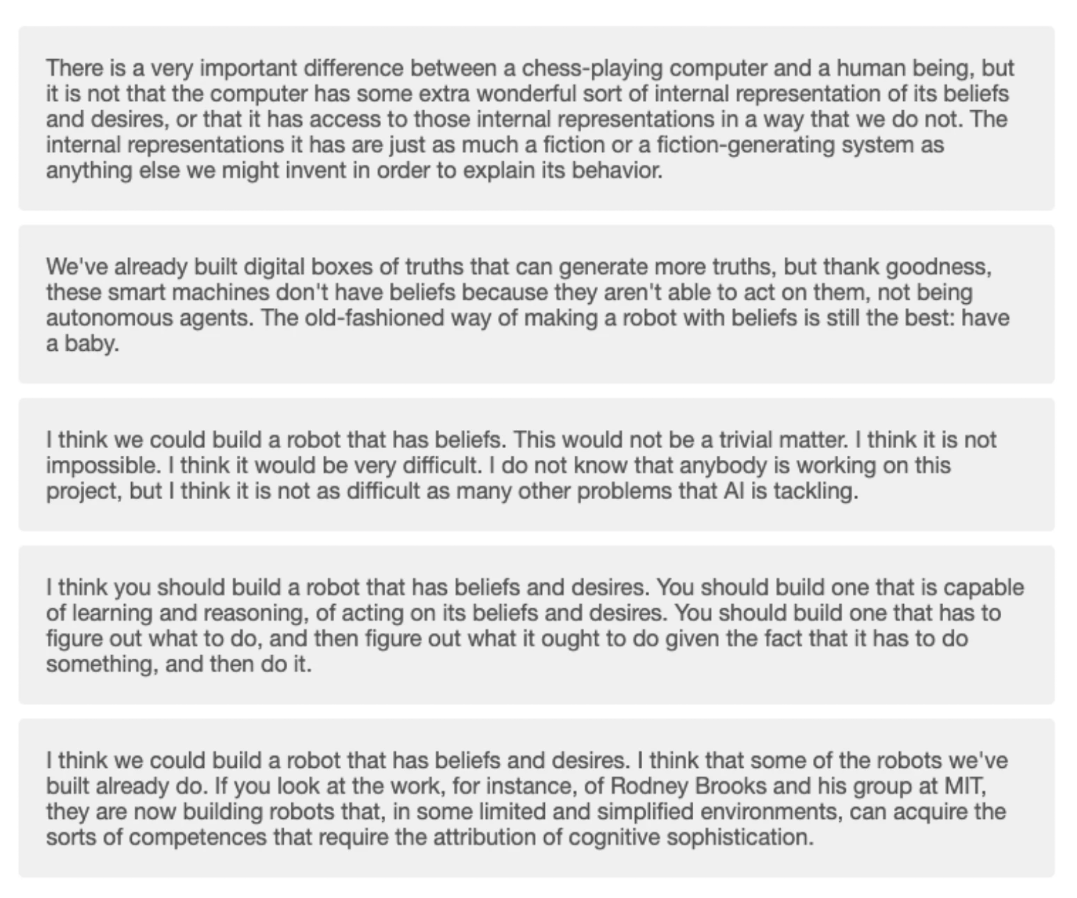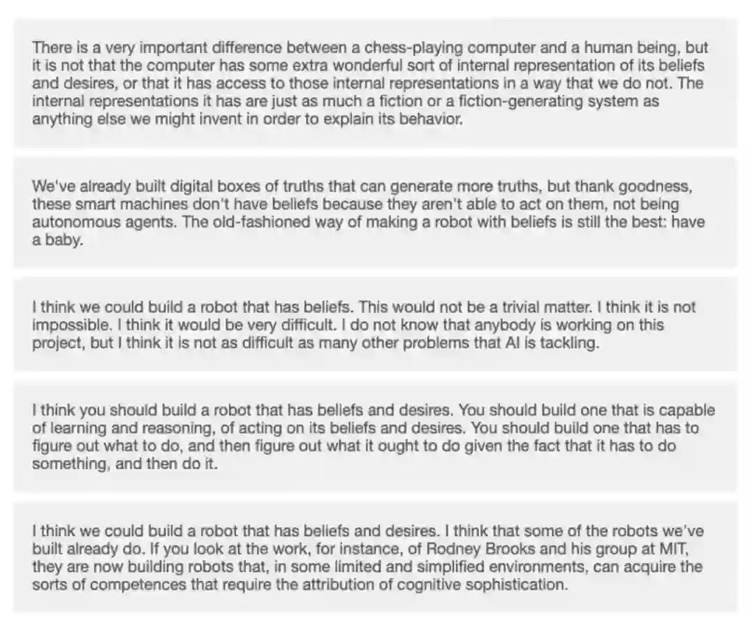 当然,并不是说GPT-3学会了能像Dennett一样 「有想法」。