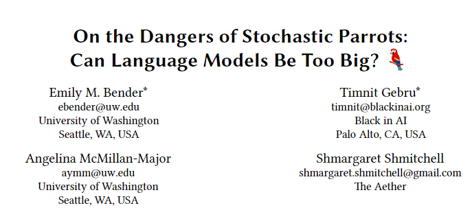 在2021年发表的一篇题为模仿鹦鹉的论文中,Emily Bender和她的同事将机器模仿人类行为的尝试称为「人工智能伦理发展的一道亮线」。