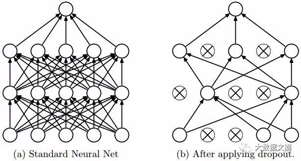 ,在训练过程中随机地从神经网络中删除单元(以及相应的连接),进而防止单元间的过度适应。在训练过程中,在指数级的不同“稀疏”网络中剔除样本。在测试阶段,很容易通过使用有较小权重的单解开网络(untwinednetwork),将这些稀疏网络的预测取平均进而逼近结果。这能有效地避免过拟合,并且相比其它的正则化方法能得到更大的性能提升。中,Dropout技术已经被证明在计算机视觉、语音识别、文本分类和计算生物学等领域的监督学习任务中能提升神经网络的性能,并在多个基准测试数据集中达到顶尖结果。