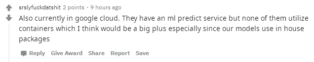 目前也在Google Cloud中,他们提供ML预测服务,但是他们都不使用容器,我认为这是一大优势。