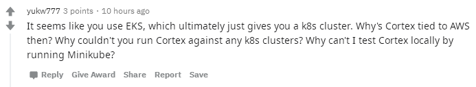 为啥要将Cortex和AWS绑在一块?为啥不支持 所有的k8s集群?为啥不能通过运行Minikube在本地测试Cortex?——来自网友的灵魂三连问