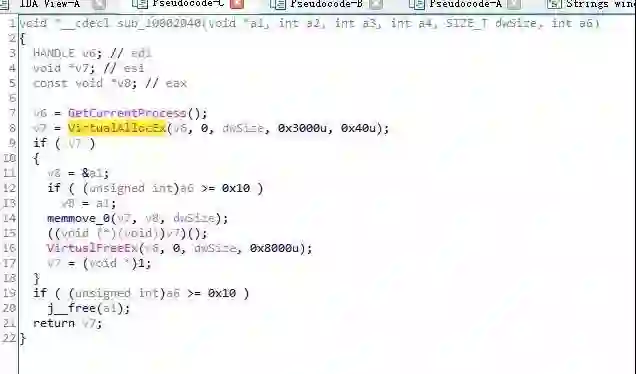 5) 下载完成后拷贝 payload 到新申请内存空间,跳转到 payload 的 0 偏移位置执行,相关代码:
