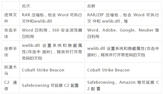 近日,微步在线狩猎系统捕获了一个 APT32 针对我国进行攻击的诱饵,该诱饵使用了两层白利用进行 DLL 劫持,第一层为 Word 白利用,第二层为 360 安全浏览器白利用,最终投递的木马为 Cobalt Strike Beacon 后门,C2通信使用 Safebrowsing 可延展 C2 配置。