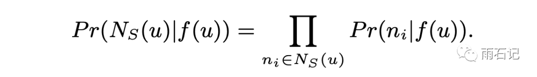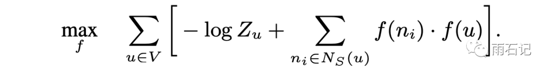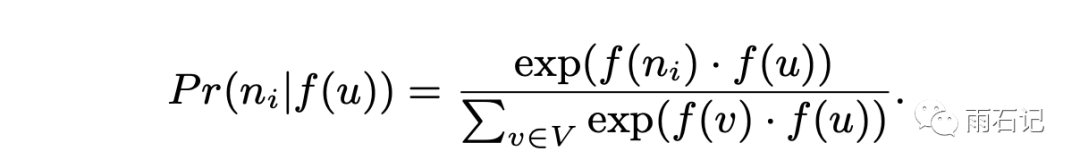 同理,对于图中的每个节点,去预测它的邻居。公式如下:
