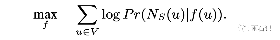 首先,定义G=(V,E)为一个网络,V是节点集合,E是边集合。我们的目标是学习一个函数f,使得V中的每个节点都能映射到一个d维向量上。