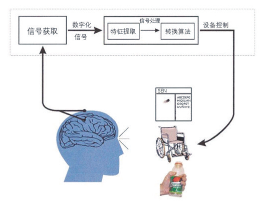 接口的意思就是人脑与设备之间形成一个中介,简单来讲,就是不需要语言或者动作,人可以直接通过脑来表达想法或操纵设备。
