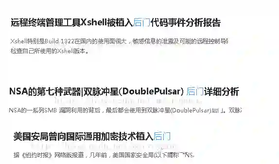 随着对抗传统后门的产品越来越成熟,由特征查杀,到行为查杀,到态势感知。到大数据联合特征溯源锁定,如何反追踪,是一个非常值得思考的问题。
