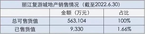 2022年半年报披露,丽江复游城项目总投资40亿元,至今年6月底已产生总成本16.58亿元,获批贷款13亿元,已使用6.56亿元,已获销售许可证建筑面积2.85万平方米,可售套数482套。