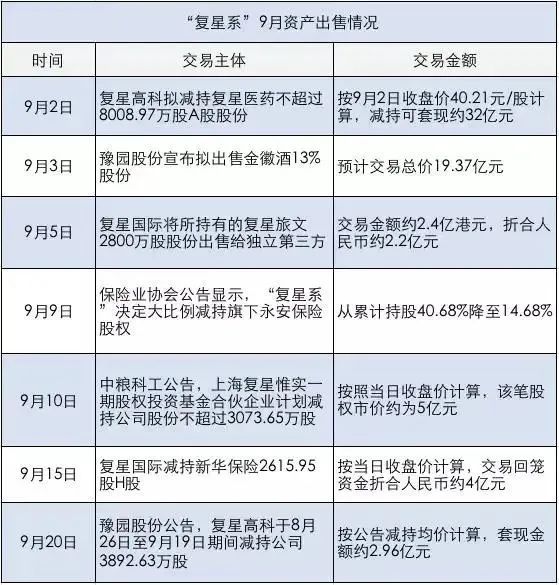 而在今年9月之前,“复星系”频繁抛售的动作已经持续近半年。