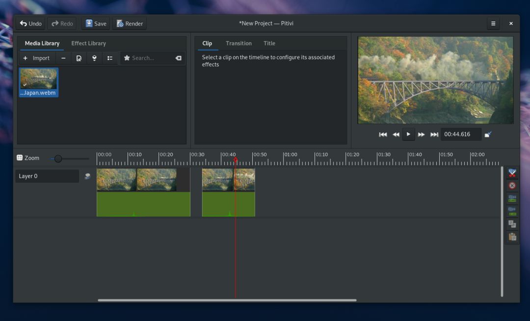 Pitivi 是一个使用 GStreamer 框架的开源非线性视频编辑器。在 Fedora 下开箱即用,Pitivi 支持 OGG、WebM 和一系列其他格式。此外,通过 GStreamer 插件可以获得更多视频格式支持。Pitivi 也与 GNOME 桌面紧密集成,因此相比其他新的程序,它的 UI 在 Fedora Workstation 上会感觉很熟悉。