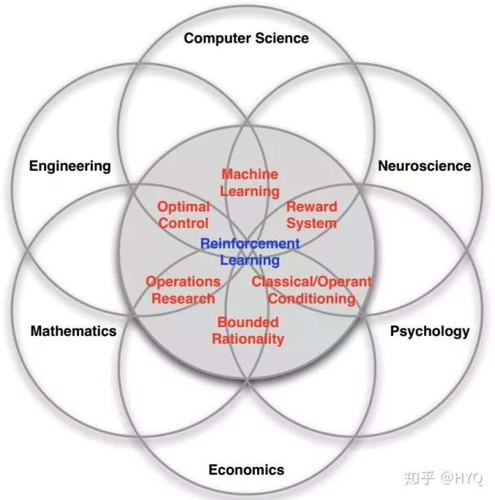 机器学习是个跨学科的研究领域,而RL则是其中跨学科性质非常显著的一个分支。RL理论的发展受到生理学、神经科学和最优控制等领域的启发,现在依旧在很多相关领域被研究。在控制理论、机器人学、运筹学、经济学等领域内部,依旧有很多的学者投身RL的研究,类似的概念或算法往往在不同的领域被重新发明,起了不同的名字。