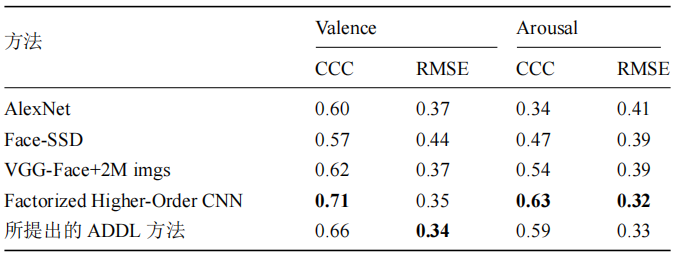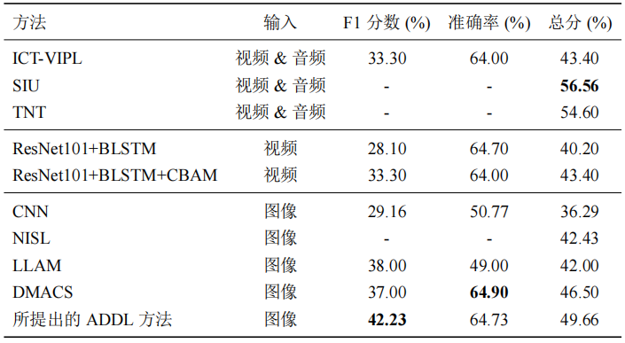 如表3所示,在大规模人脸表情数据集Aff-Wild2上,ADDL的性能优于其他基于图像输入的算法。