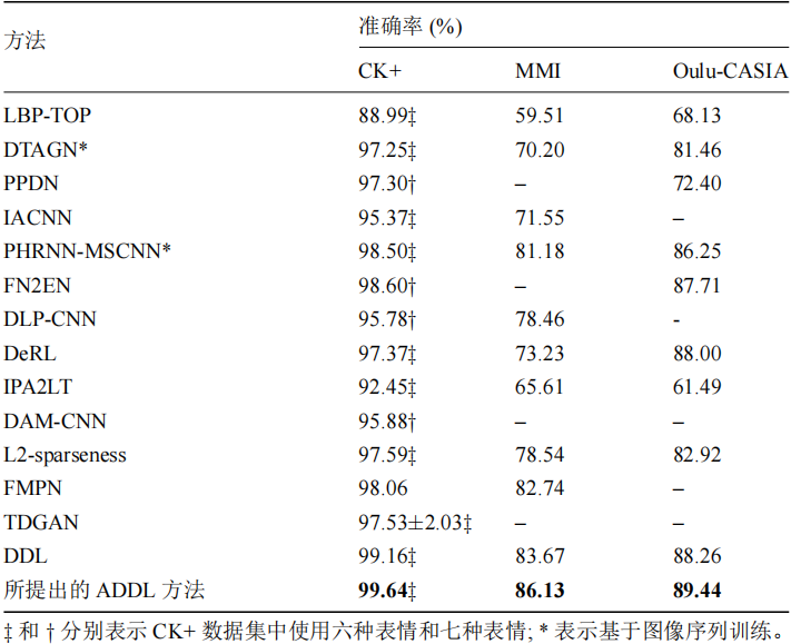 本文在三个室内数据集和四个室外数据集上对ADDL与当前流行的人脸表情识别方法进对比实验。