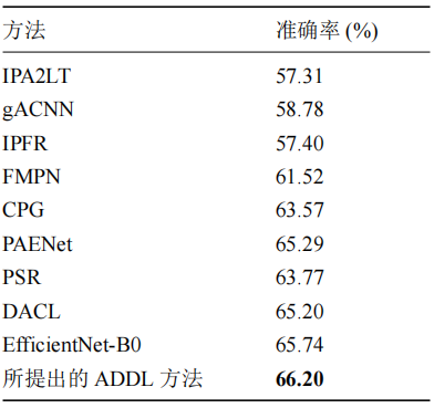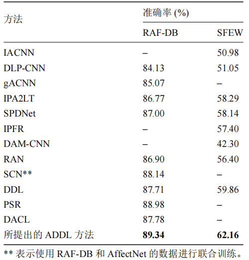 如表2所示,ADDL在室外的表情数据集RAF-DB和SFEW上,也具有较高的识别准确率。