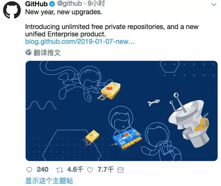 无论你是一个即将编写第一行代码的学生,一个拥有世界各地团队的企业领导者,还是一个开源维护者,我们都希望Github成为你编码、协作和与全球开发者社区联系的最佳场所。今天的变化是对Github未来的巨大投资,我们很高兴看到你在2019年的建设。