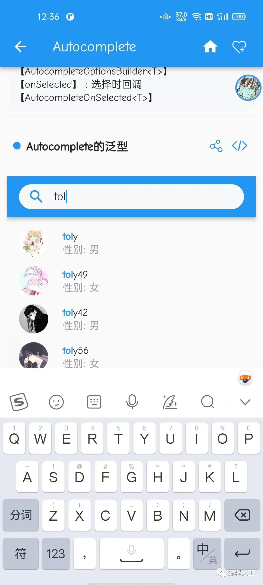 Future<Iterable<String>> searchByArgs(String args) async{// 模拟网络请求await Future.delayed(const Duration(milliseconds: 200));const List<String> data = ['toly', 'toly49', 'toly42', 'toly56','card', 'ls', 'alex', 'fan sha',];return data.where((String name) => name.contains(args));}